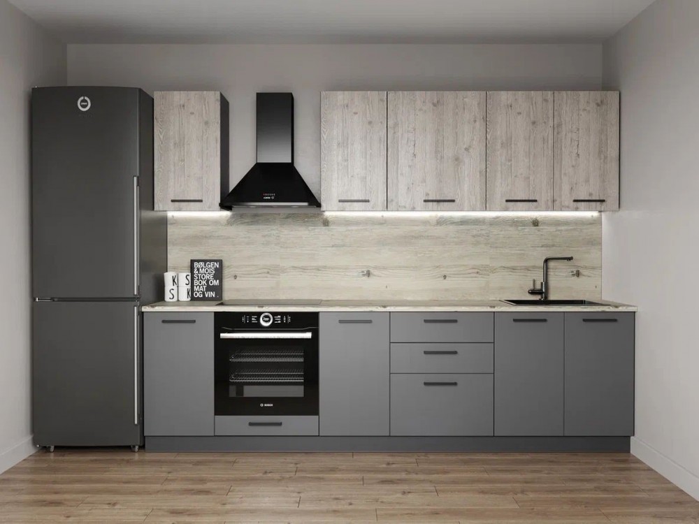 Фасады верхних модулей со свесом 12 мм дают возможность использовать без установки ручек.