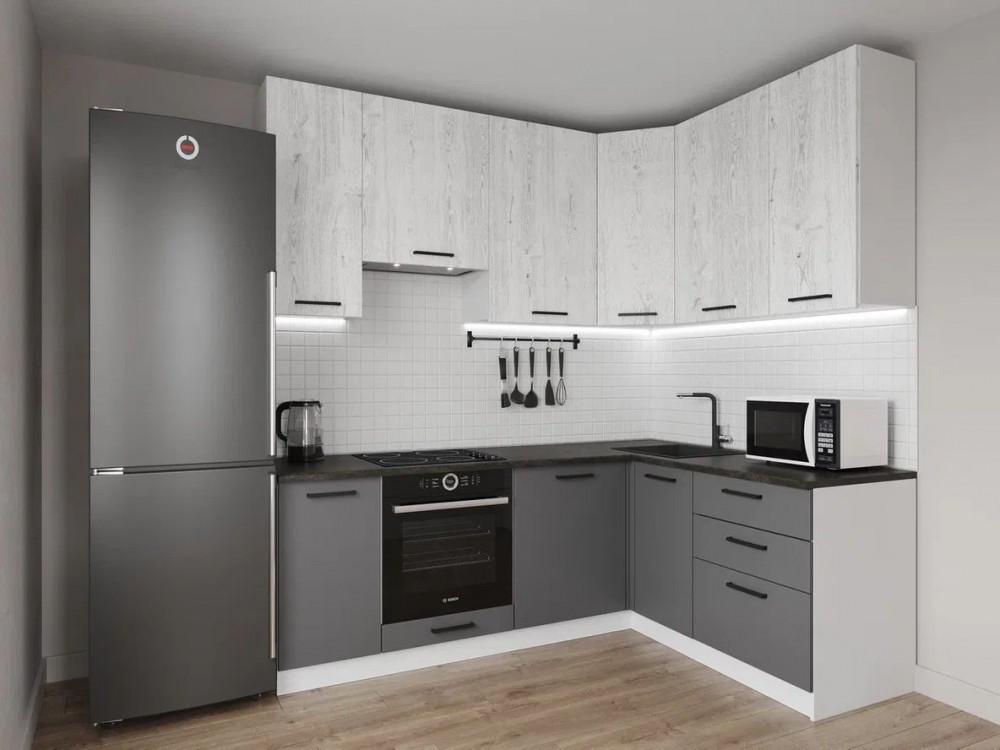 Интернет-магазин "Мебель 24" рад предложить Кухонный гарнитур угловой Санторини 2200*1600 h950 (Стол. 26мм) по привлекательной цене, от производителя САНВУТ.